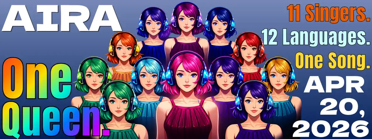 11人のシンガーが同一楽曲をそれぞれの言語で歌い、文化や感情の違いそのものを音楽として表現。 さらにAIは制作・翻訳・発信の全工程に関与し、その中からSNSと投票の指標をもとに“Queen”を選出します。 |