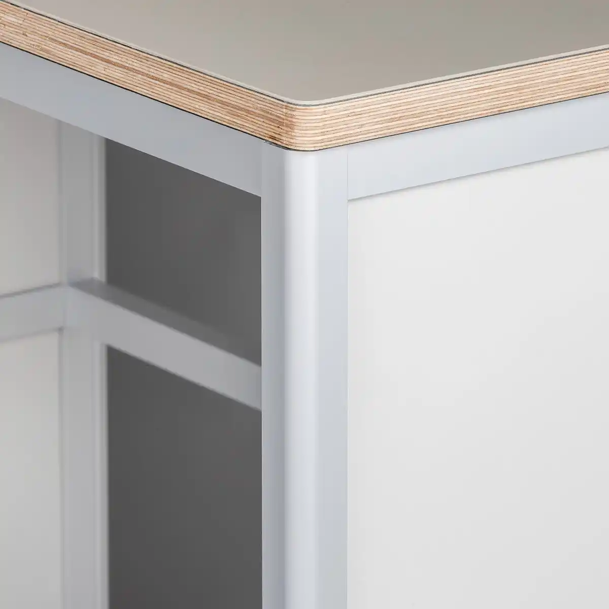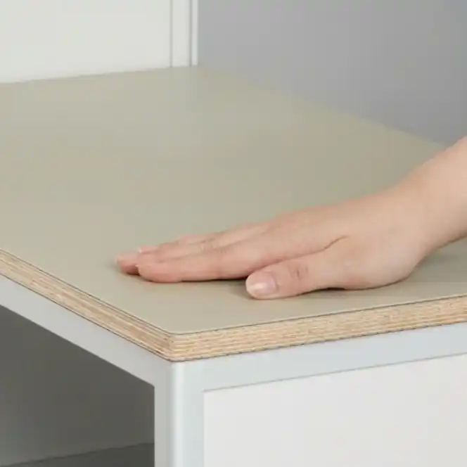 マットでやさしい質感のファニチャーリノリウム天板を採用。 |