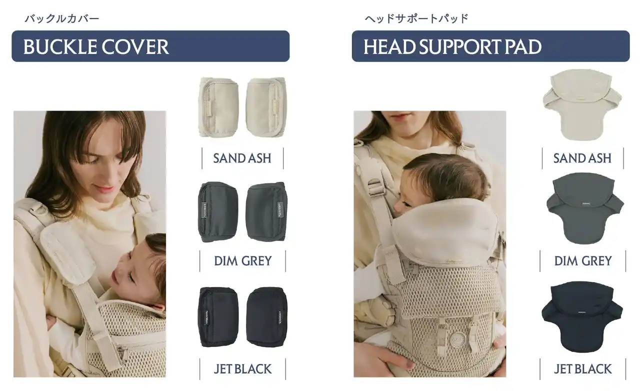 既存モデルの「COMFO」は、季節に応じてカバーを切り替えられる2WAYタイプのハイエンドモデルとして今後も継続展開します。 一方「TEMPO」は、日本の酷暑環境を前提にメッシュ仕様のカジュアルモデルとして位置づけ、新生児から卒業まで使用できる基本性能を維持しながら、軽やかな装着感と扱いやすさ、価格もCOMFOより抑えた設定とし、日常的に取り入れやすい選択肢としました。 |