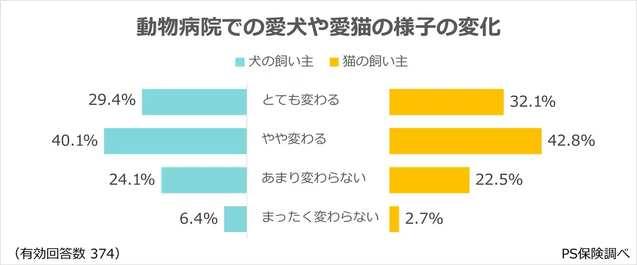 ※以下の集計では、動物病院での愛犬や愛猫の様子の変化で「まったく変わらない」を選択した回答者を対象外としています。 |
