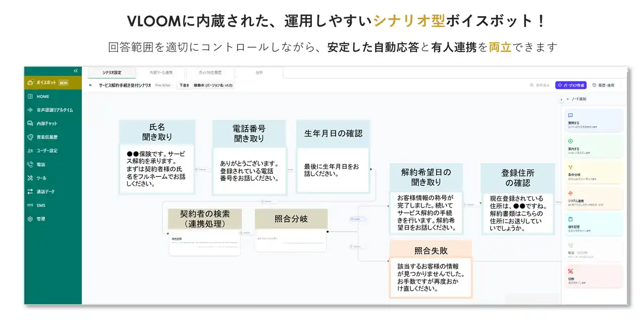 コールセンターシステムやマーケティングシステムを月額制のクラウド型で提供している株式会社コラボス(本社:東京都千代田区、代表取締役社長:茂木 貴雄)は、AIコールセンターシステム「VLOOM」において、AIによる音声対話を実現した「ボイスボット機能」を、正式リリースいたしました。 |