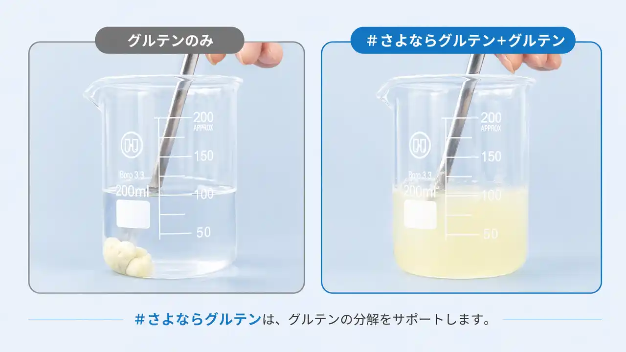 「完全に避けるのではなく、分解する」という新発想のもと、株式会社ITAWARUは「#さよならグルテン」を開発しました。 |