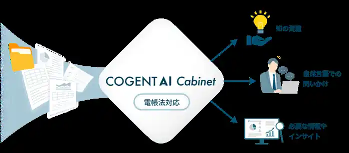 株式会社Cogent Labs(本社:東京都港区、代表取締役:エリック・秀幸・ホワイトウェイ)は、さまざまな企業文書を電子帳簿保存法(電帳法)に対応した形で保存可能な、AI電子保存ナレッジベース「COGENT AI Cabinet(キャビネット)」の提供を開始いたしました 。 |