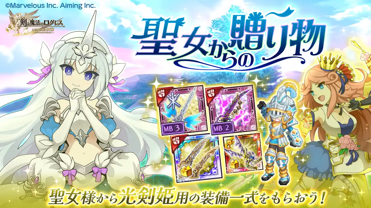 新武器「霊刀ミルトワイス」を含む、光剣姫用の装備一式を授かろう! |