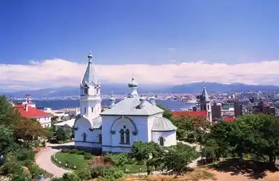 和洋折衷の建物が残り、「函館ハリストス正教会」や「カトリック元町教会」をはじめとした教会群や洋館が建ち並ぶ元町エリア、レンガ造りの倉庫群の「金森赤レンガ倉庫」は有名。「五稜郭公園」では、春は桜、夏は新緑、秋は紅葉、冬は一面の銀世界と四季折々の景観が楽しめます。 |