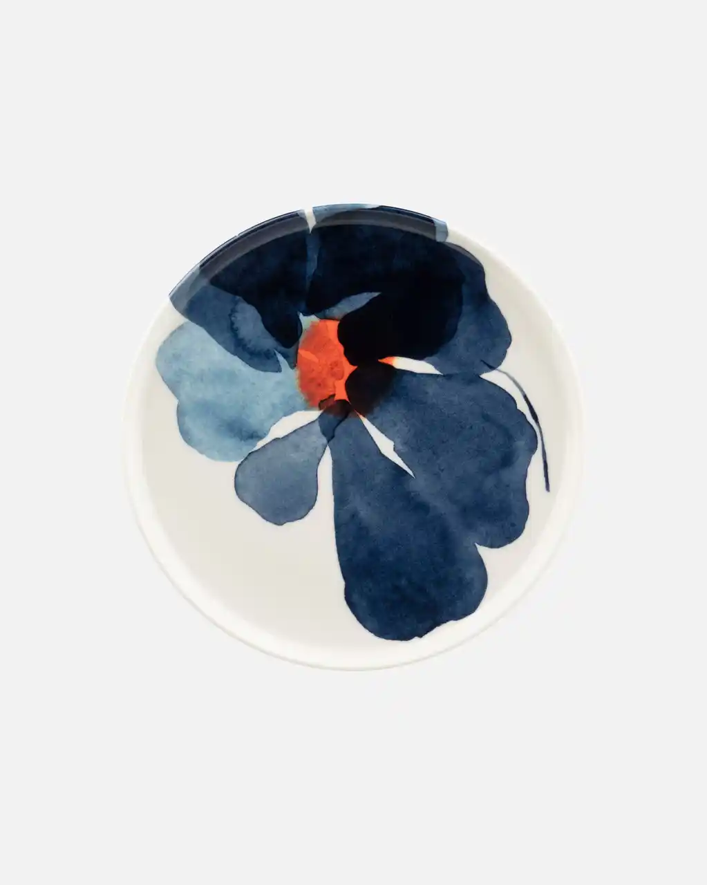 アイノ=マイヤ・メッツォラ(Aino-Maija Metsola)によってデザインされたヴァルシ(Valssi)は、夏の爽やかな夜を思い浮かべながら、大胆かつ繊細な花々が描かれています。透明な花びらは、花のダンスを思わせる動きとリズム感を表現しています。 |