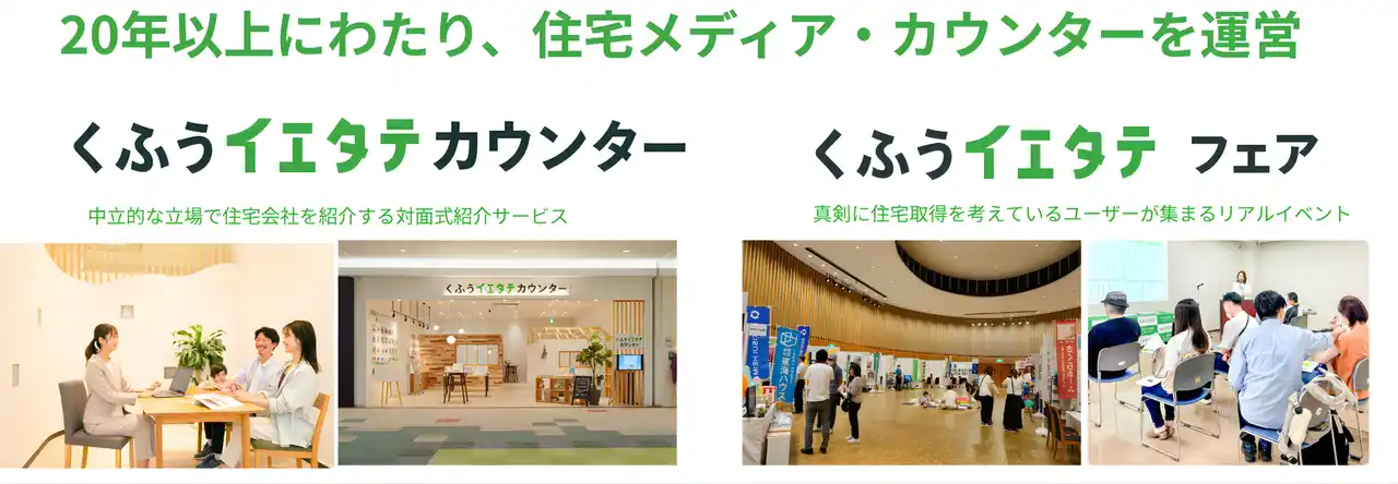 株式会社くふう住まいは、「家づくりをもっと楽しく、もっと自由に。」をコンセプトに、家を建てたい人と地元の住宅会社をつなぐメディア・相談窓口・イベントを展開しています。