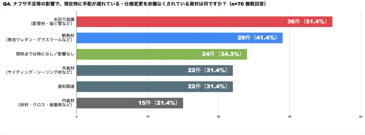 Q4. ナフサ不足等の影響で、現在特に手配が遅れている・仕様変更を余儀なくされている資材は何ですか?(複数選択) |