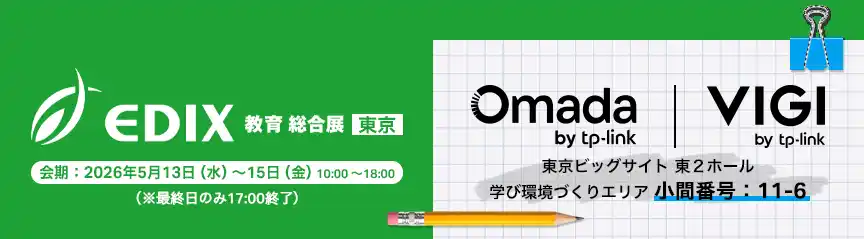 TP-Linkグループ(本社:米国カリフォルニア州アーバイン)の日本法人、ティーピーリンクジャパン株式会社(本社:東京都千代田区外神田)は、2026年5月13日(水)~15日(金)に東京ビッグサイトで開催される教育総合展「第17回 EDIX 東京」へ出展します。 |