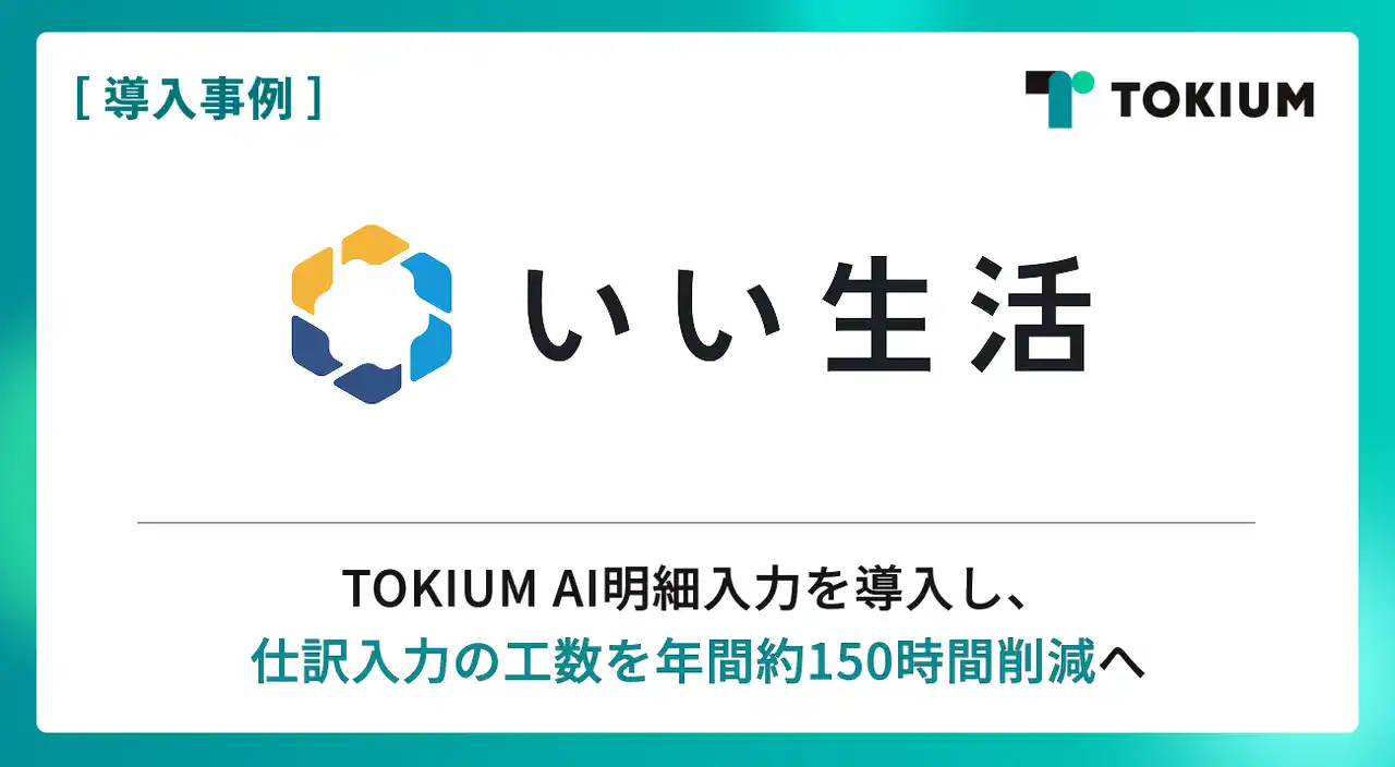 【株式会社TOKIUM】 不動産市場向けSaaSの「いい生活」、TOKIUM AI明細入力を導入し、仕訳入力の工数を年間約150時間削減へ