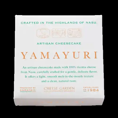 『YAMAYURI』は、リコッタチーズのミルク感、コク、甘みが感じられる、軽やかな口どけのレアチーズケーキです。那須で酪農業を始めて、良質な草をつくり、それを食べて元気に育ったジャージー乳とホルスタイン乳から、それぞれの特徴を生かしたチーズを作り続けているチーズ工房「so-boku」のリコッタチーズを100%使い、チーズガーデンが紡いできた、那須の美しい自然とともに“この地でしか作れない”菓子作りの技術・製法で作られた、“ここでしか生み出せない”一品です。那須の土地で育まれ、手間暇かけて作る素材の個性を大切にして、職人が一つひとつ丁寧に手仕事で作り上げることから、那須本店にて毎月数量限定で発売いたします。 |