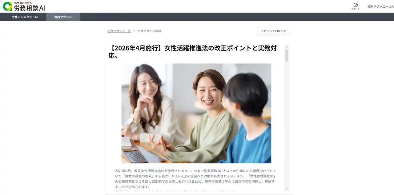 4.労務知識を継続的に学べるコンテンツ配信 労務担当者向けに、法改正や実務のポイントを解説する記事を定期的に配信し、知識の向上を支援します。 |