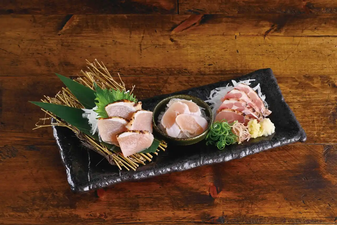 部位ごとに異なる三種の地どりの旨みをご堪能いただけます。※当社の冷製地どり料理は【塩せき熟成製造】により非加熱食肉製品の規格基準をクリアした製品を使用しております。 |