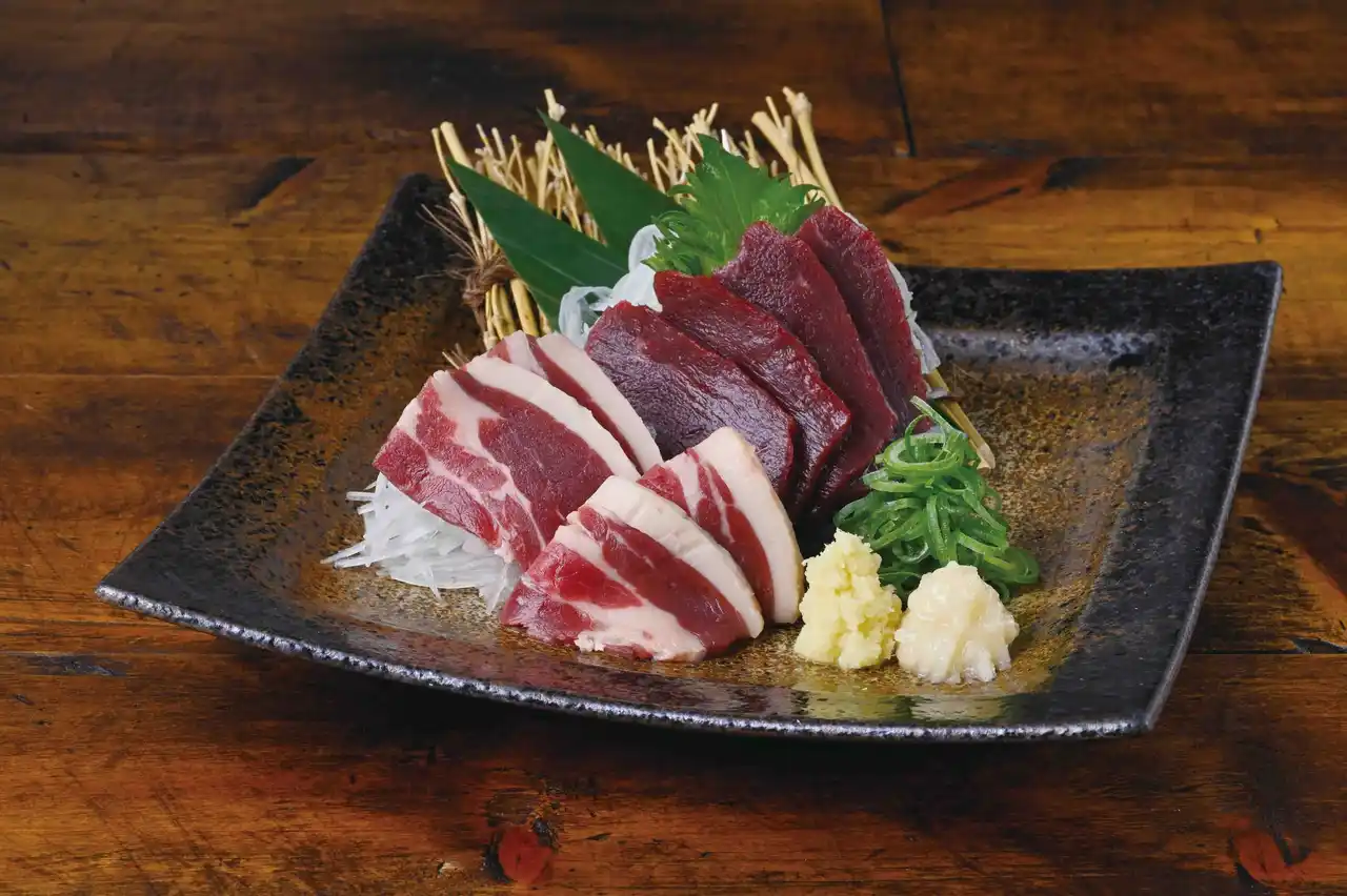 【自慢の逸品】馬刺し二種盛り合せ 希少!!ロースえんがわと赤身 |