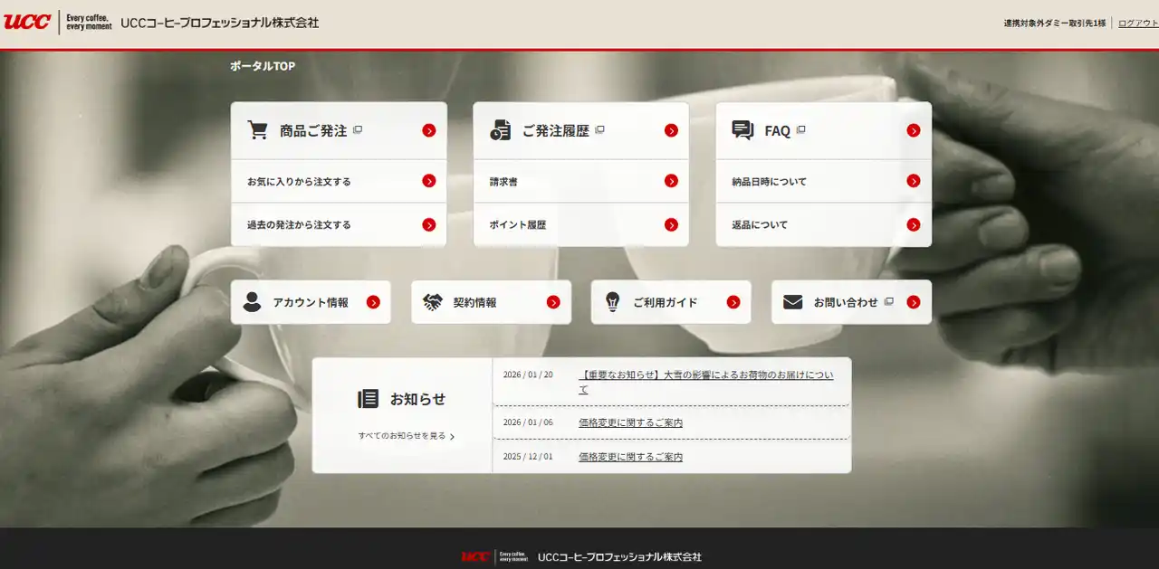 | UCCグループの業務用サービス事業の中核を担うUCCコーヒープロフェッショナルでは、旧システムの限界とアナログな受発注が主流である飲食業界の商習慣をいかにデジタル化するか という課題を抱えていました。EC-CUBEへのリプレイスにより、以下を実現しています。 | |||