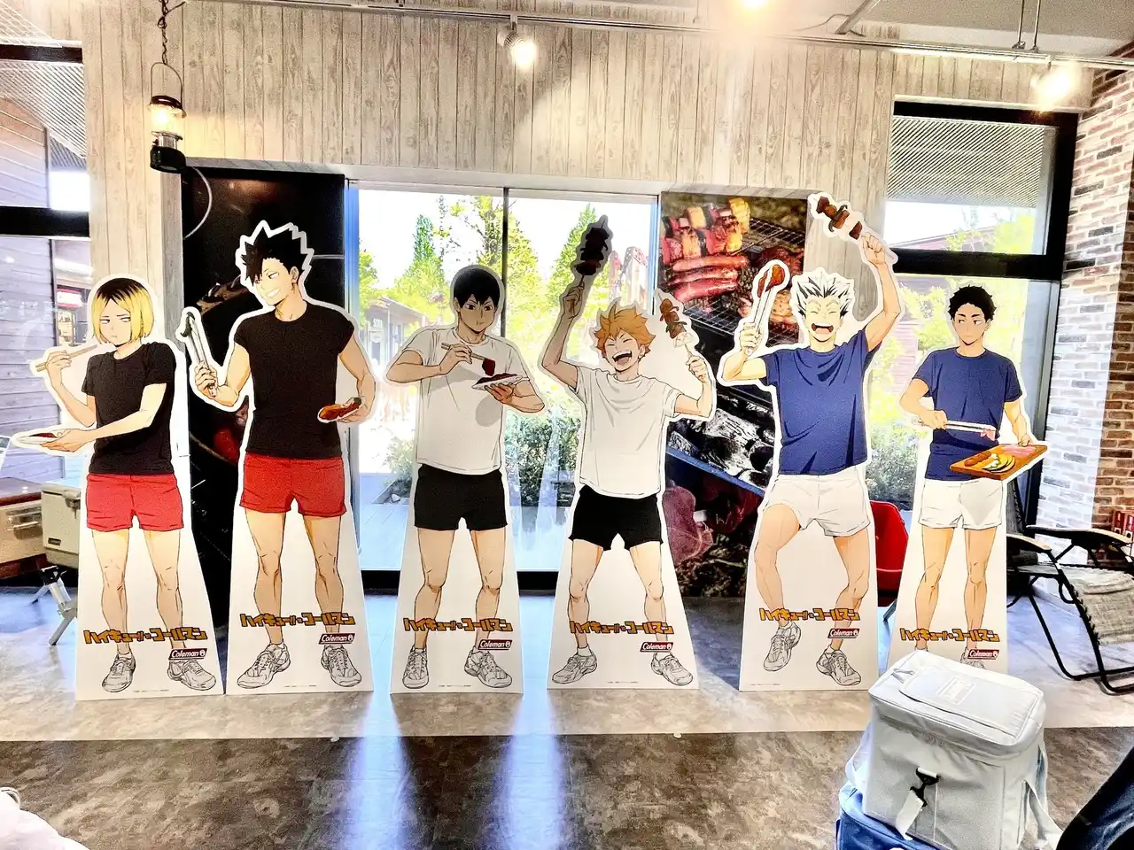 さらに、コールマン直営店舗の昭島アウトドアヴィレッジ店では、コラボギアの展示とともに主人公・日向翔陽をはじめとした主要キャラクターの等身大パネルも設置しております。 |