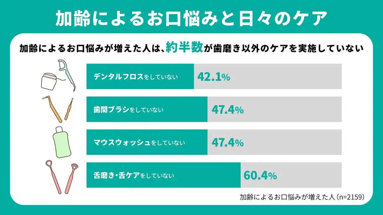 3.加齢によるお口の悩みが増えた人は、日々の口内対策を怠っていることが判明。肌と同じように、トラブルを感じる前からの「お口年齢ケア」が重要。