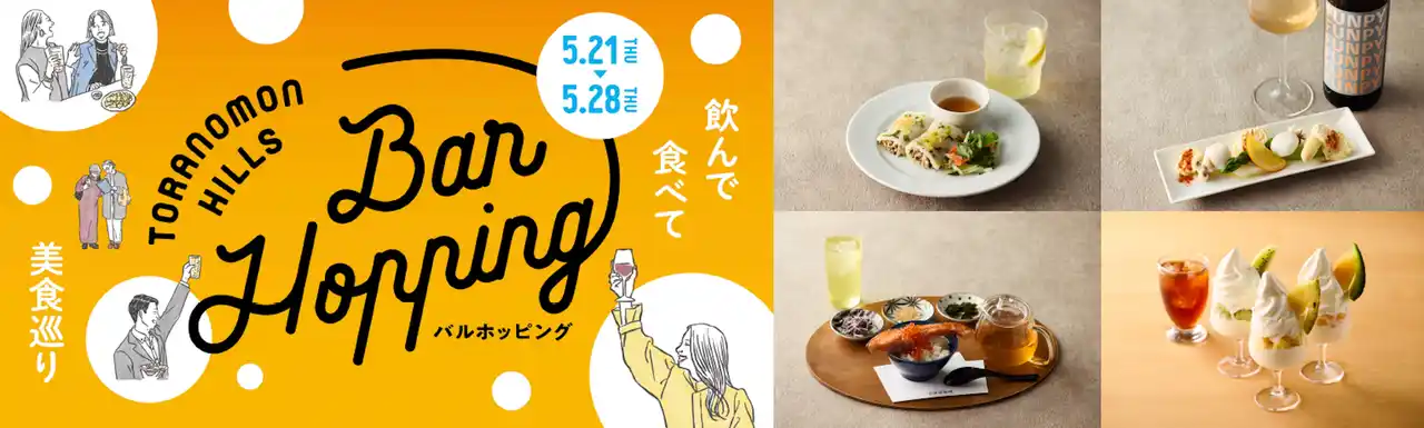 森ビル株式会社(東京都港区、代表取締役社長 辻 慎吾)が運営する「虎ノ門ヒルズ」は、2026年5月21日(木)~28日(木)の期間、「Toranomon Hills Bar Hopping ~飲んで食べて美食巡り~」(以下、Toranomon Hills Bar Hopping ※読み「バルホッピング」)を開催します。 |