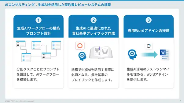 これまで、セキュリティやデータガバナンスの観点から生成AIの本格活用に踏み切れなかった企業の法務部門にも、生成AIのポテンシャルを最大限かつ安全に発揮できる環境を提供し、各企業の法務AXの実現を支援してまいります。 |