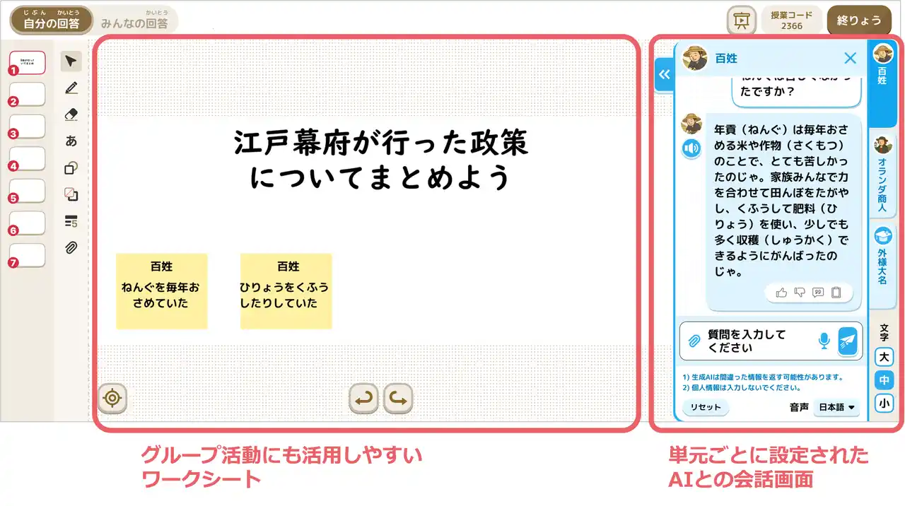 2.授業用プロンプトを協働学習用教材として標準搭載 |