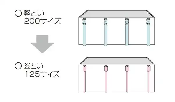 使用材料(200サイズ→125サイズ、配管設置本数)の減少、施工性の向上、 |