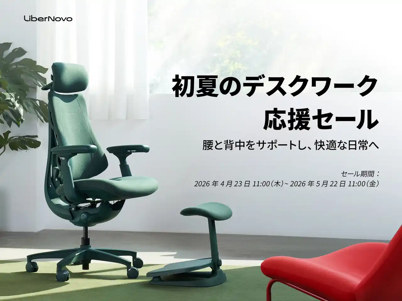 イベント名:「初夏のデスクワーク応援セール」 開催期間:2026年4月23日(木)11:00 ~ 2026年5月22日(金)11:00 セール会場:https://jp.libernovo.com/ |