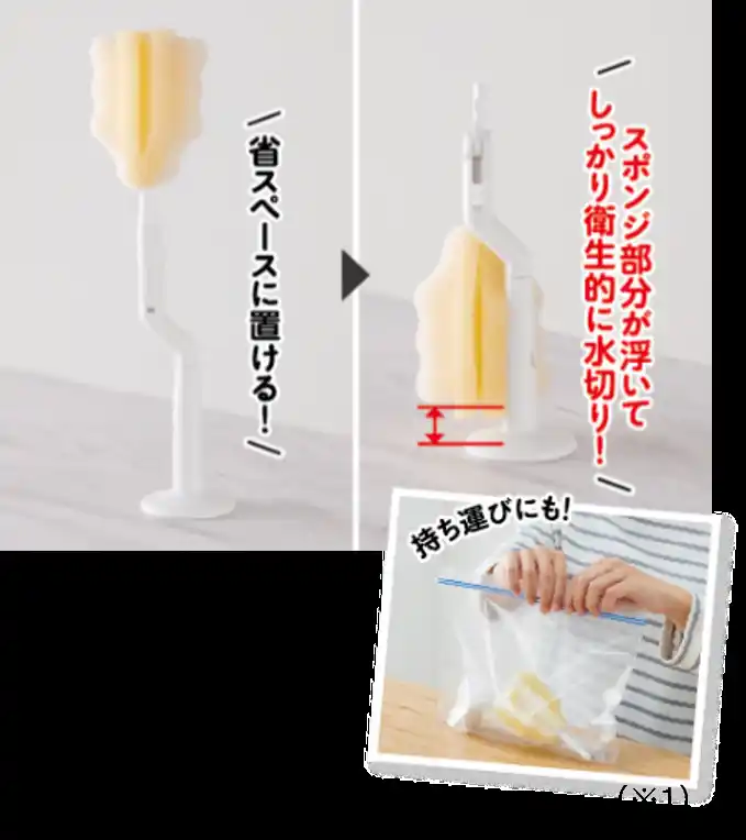 (※1)袋などに入れて持ち運ぶ際にはしっかりとスポンジを乾かしてから入れてください。 |