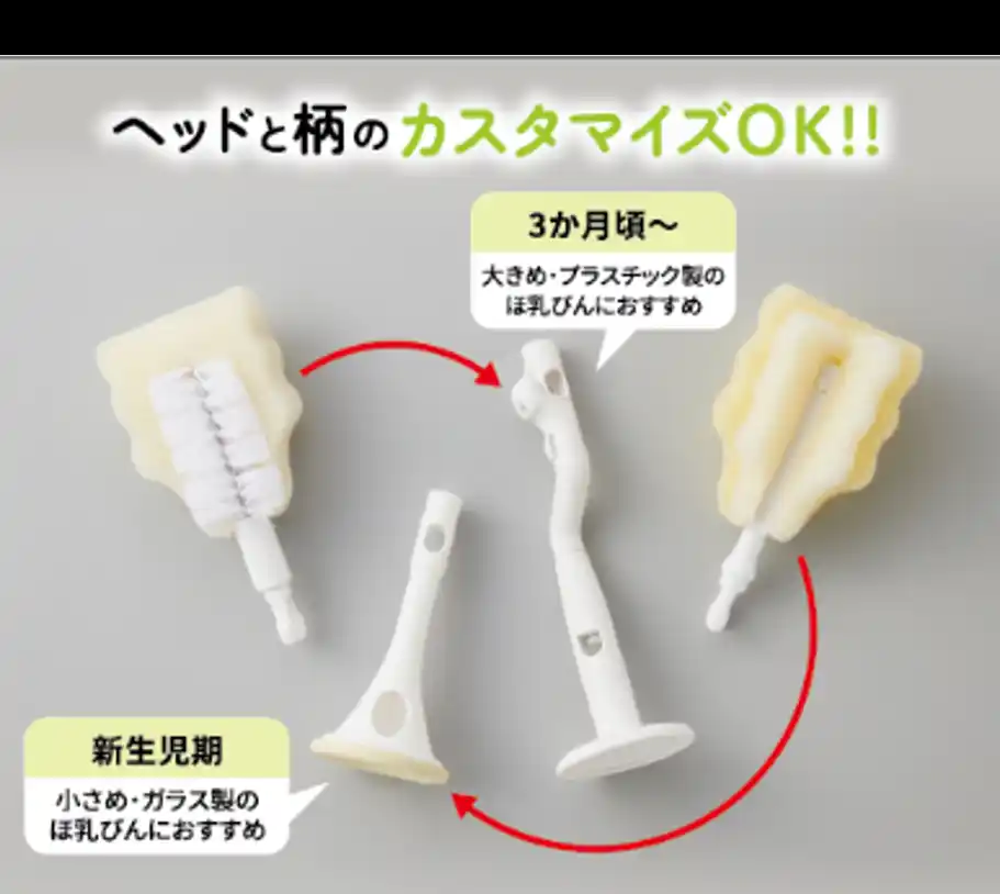 POINT5:新生児期用ほ乳びん向けスポンジブラシとヘッドが交換できる! |