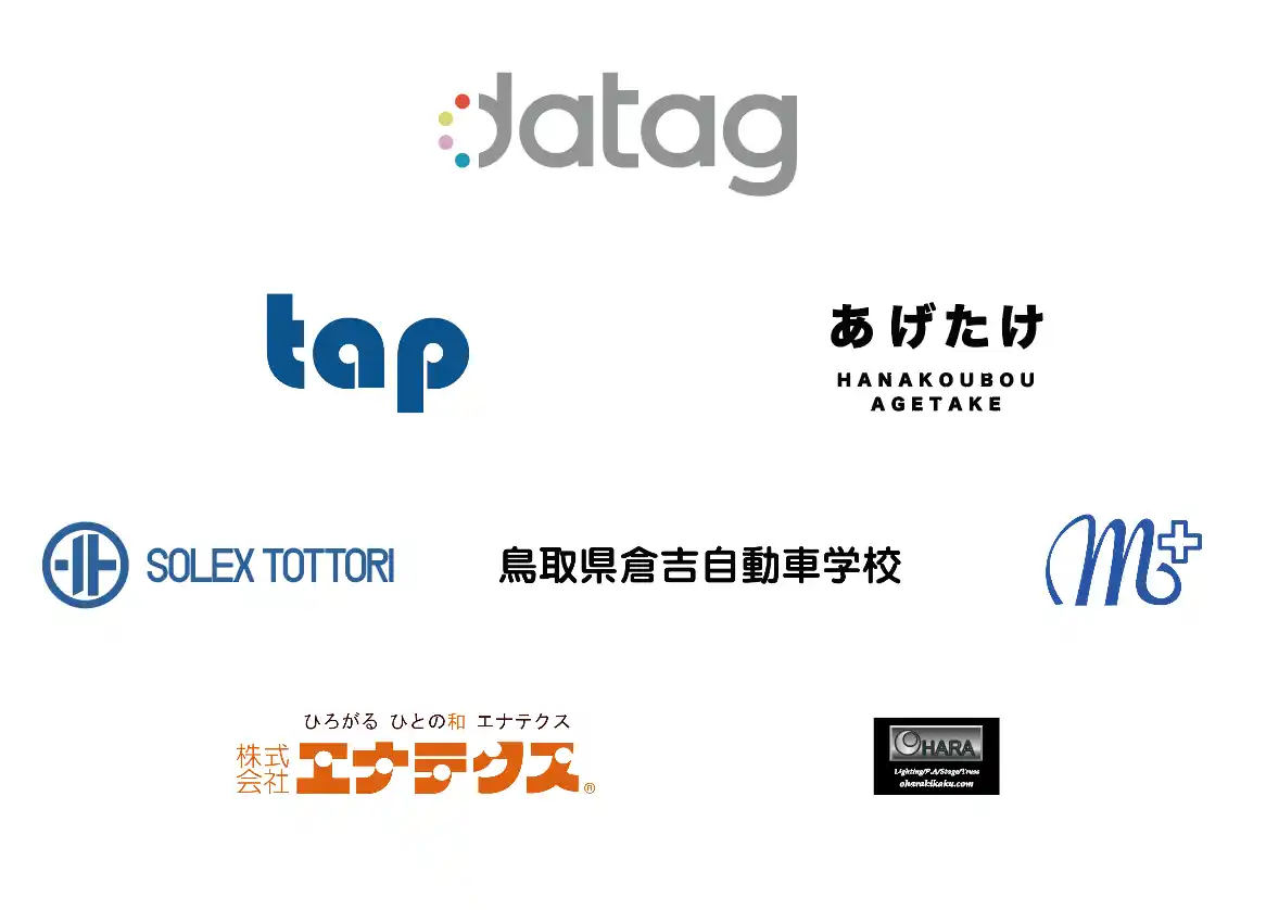 datag株式会社、株式会社タップ、株式会社花工房あげたけ、ソレックス鳥取株式会社、鳥取県倉吉自動車学校、三朝温泉病院、株式会社エナテクス、オハラ企画株式会社 |