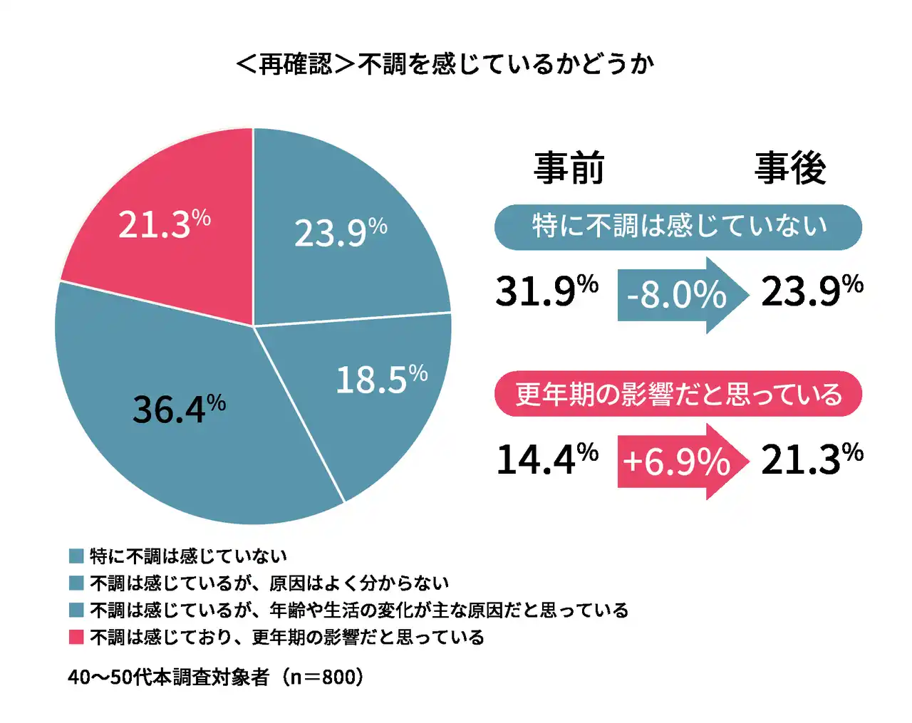 自身の不調が「更年期の影響である」と気づく人も6.9ポイント増加 |