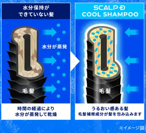 夏の暑さや強い日差しによる髪・頭皮ダメージ※13をケア。水分保持に着目した毛髪補修成分「エクトイン」を配合し、乾燥によるパサつきを抑え、髪にうるおいを与えます。 |