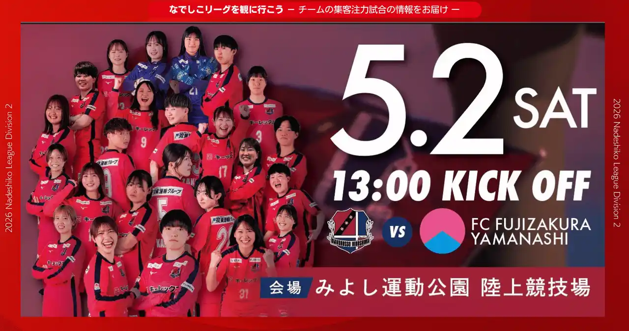 なでしこリーグでは、昨シーズンより全24チームが年間を通じて特定の試合を「集客注力試合」と定め、各チームとリーグが共同で情報発信を展開する取り組みを継続しております。この取り組みは、スタジアムでの観戦体験をより多くの方に届けることを目的としています。 |