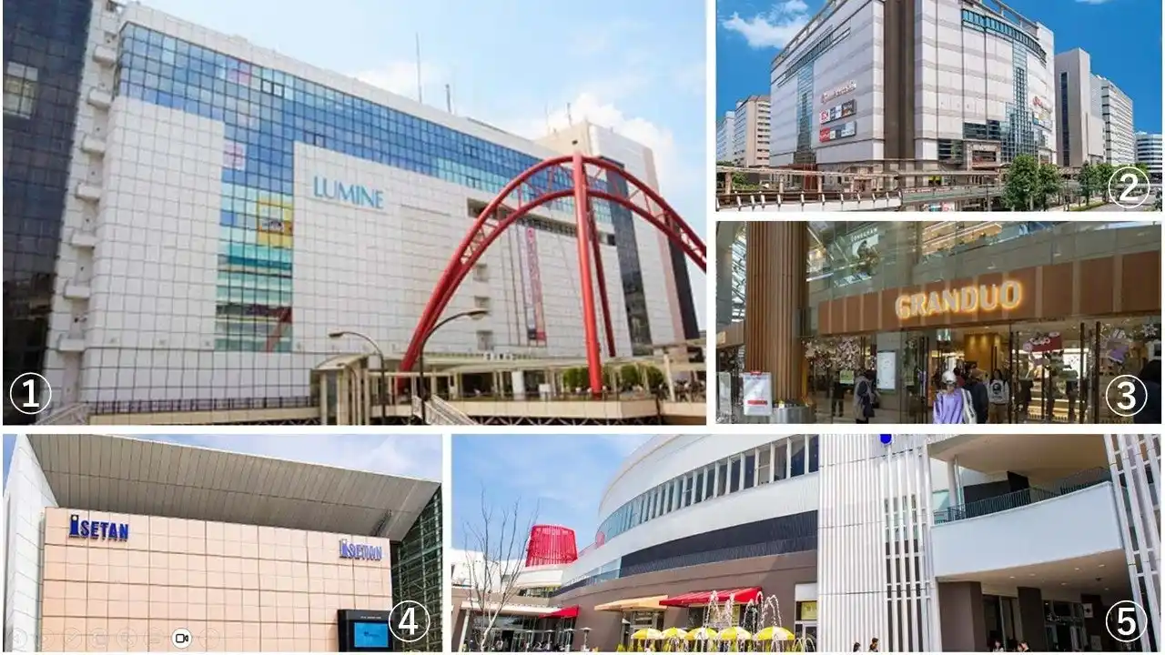 1.ルミネ 立川店(約2,230m)2.立川高島屋 S.C. (約2,380m)3.グランデュオ立川(約2,250m)4.伊勢丹 立川店(約2,230m)5.ららぽーと立川立飛(約3,980m) |
