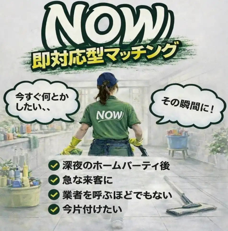 株式会社Umbrella.com Incは、必要な時にすぐ依頼できるスポット型家事サポートアプリ「NOW」を提供開始しました。 NOWは定期契約不要・30分から利用可能で、急な来客前の片付け、深夜の部屋リセット、衣替えの手伝い、定期家事代行の訪問日前の補完利用など、【今この瞬間】の困りごとに対応する新しい家事サポートサービスです。 本人確認済みワーカー登録、アプリ内チャット機能、サポート体制も整備し、安心してご利用いただけます。現在は渋谷区・港区エリアを中心に提供し、今後順次拡大予定です。 公式サイト:https://www.nowtokyoapp.com |