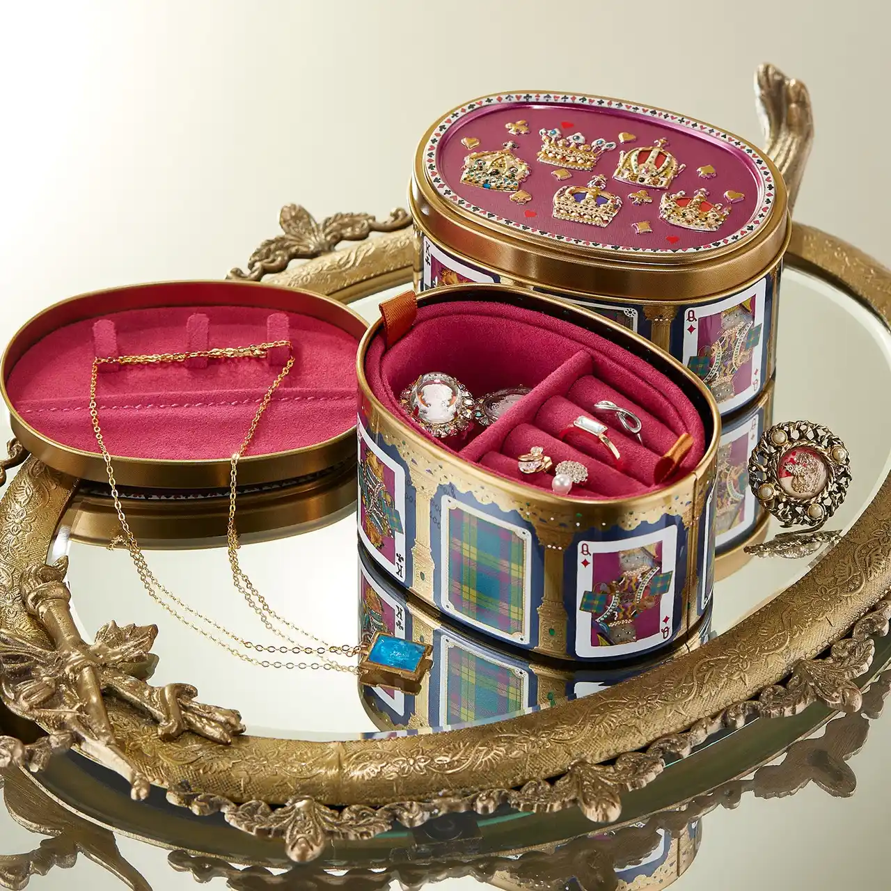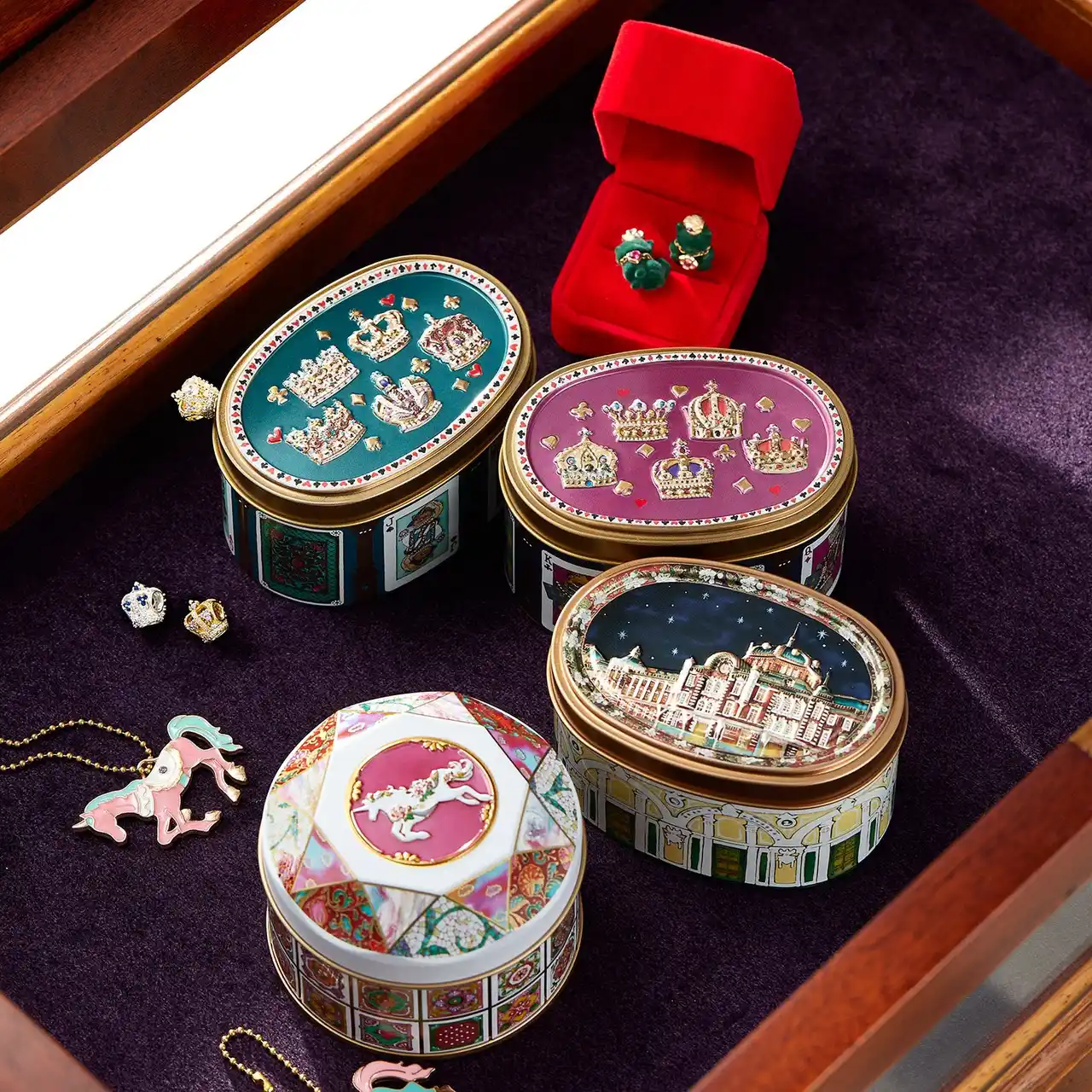 お菓子をお召し上がりいただいた後も缶をお楽しみいただけるよう、アクセサリーを収納できる専用ケースの展開も予定しております。 |