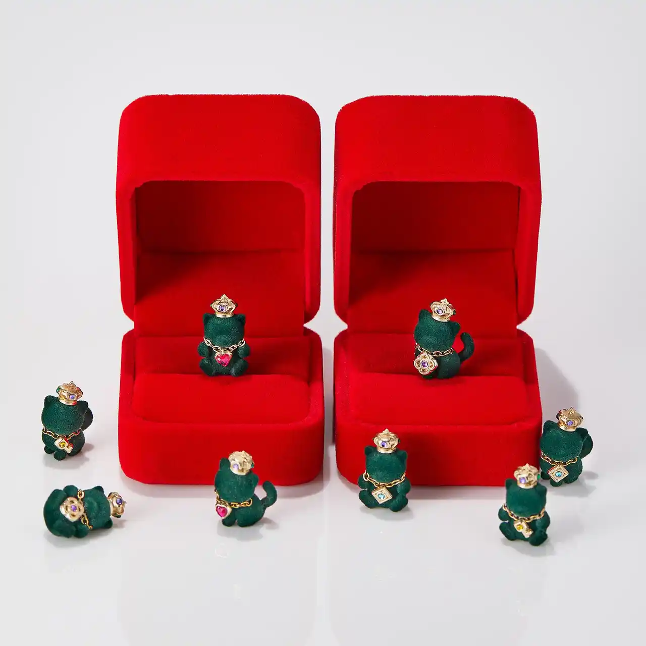 赤いアクセサリー用ケース付き『ネコの宝石』1個、 |