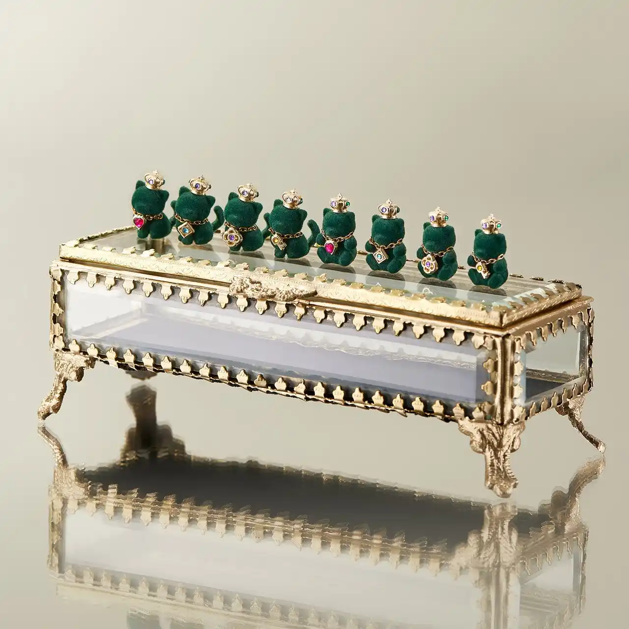 その小さなフィギュアに王冠やネックレスなどのアクセサリーをあしらい、宝石のような輝きを表現しました。 |