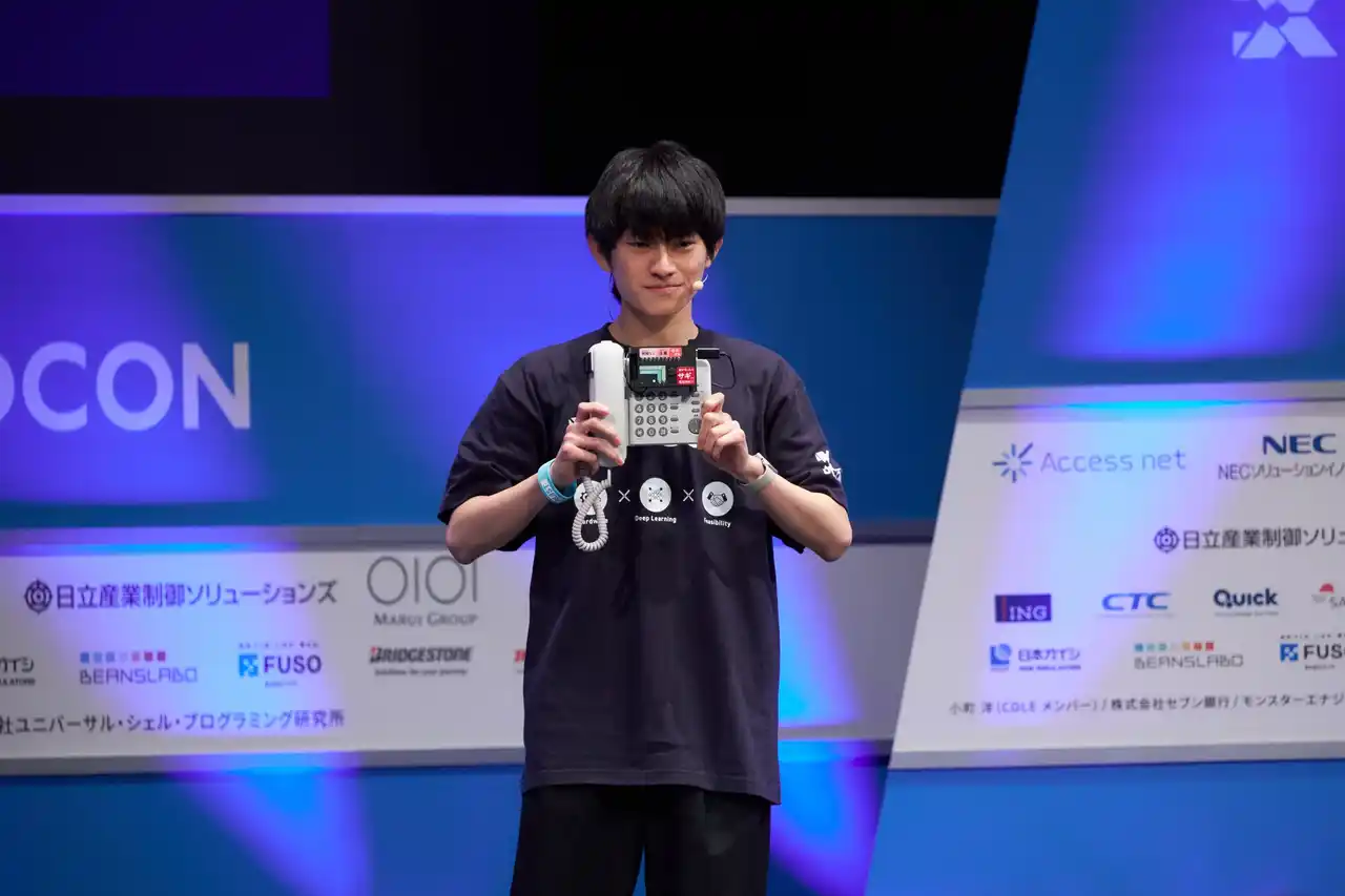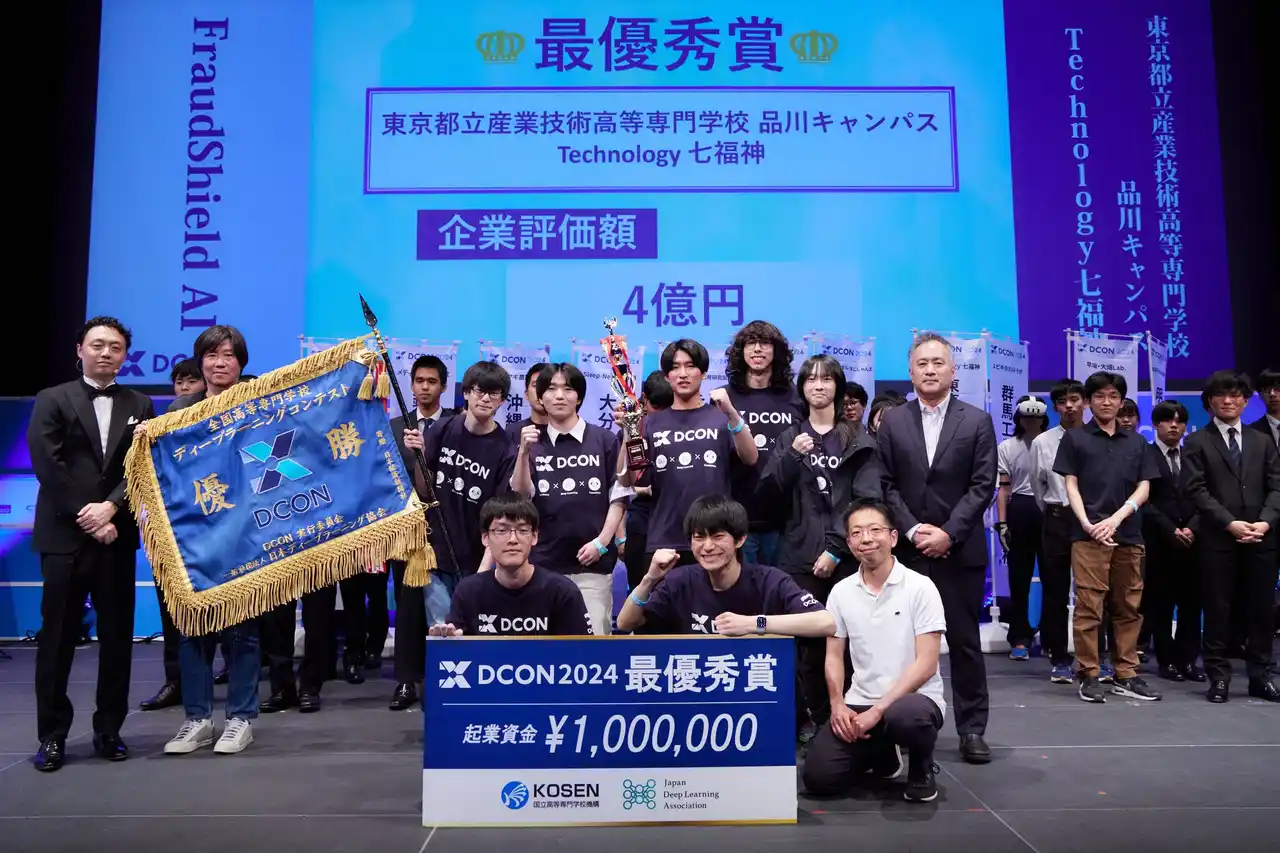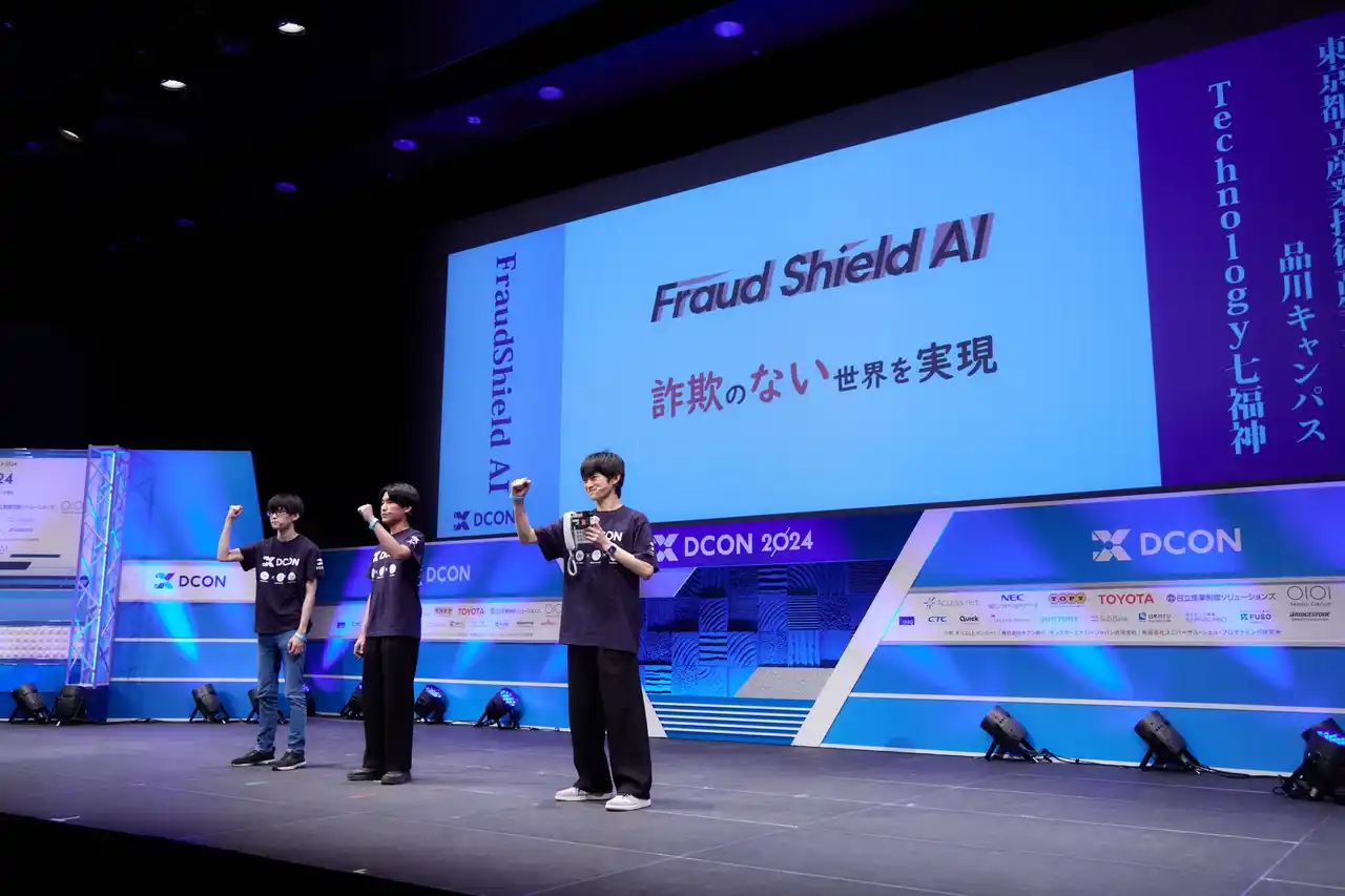 | 株式会社ToI Nexus代表取締役CEOの西谷さんが、2024年当時に率いて出場した都立産技高専生チームは、「DCON2024」大会の予選・本選を通じてディープラーニング技術を用いた極めて実効性の高いソリューションを提示しました。彼らが現在開発する『サギ止め太郎』の原型となったプロトタイプ作品とビジネスプランは、「DCON2024」の審査員である投資家たちから企業評価額4億円という極めて高い投資評価を獲得し見事に最優秀賞を受賞しチャンピオンに輝きました。 | ||||||||||||||||||||||||||||||||||||||