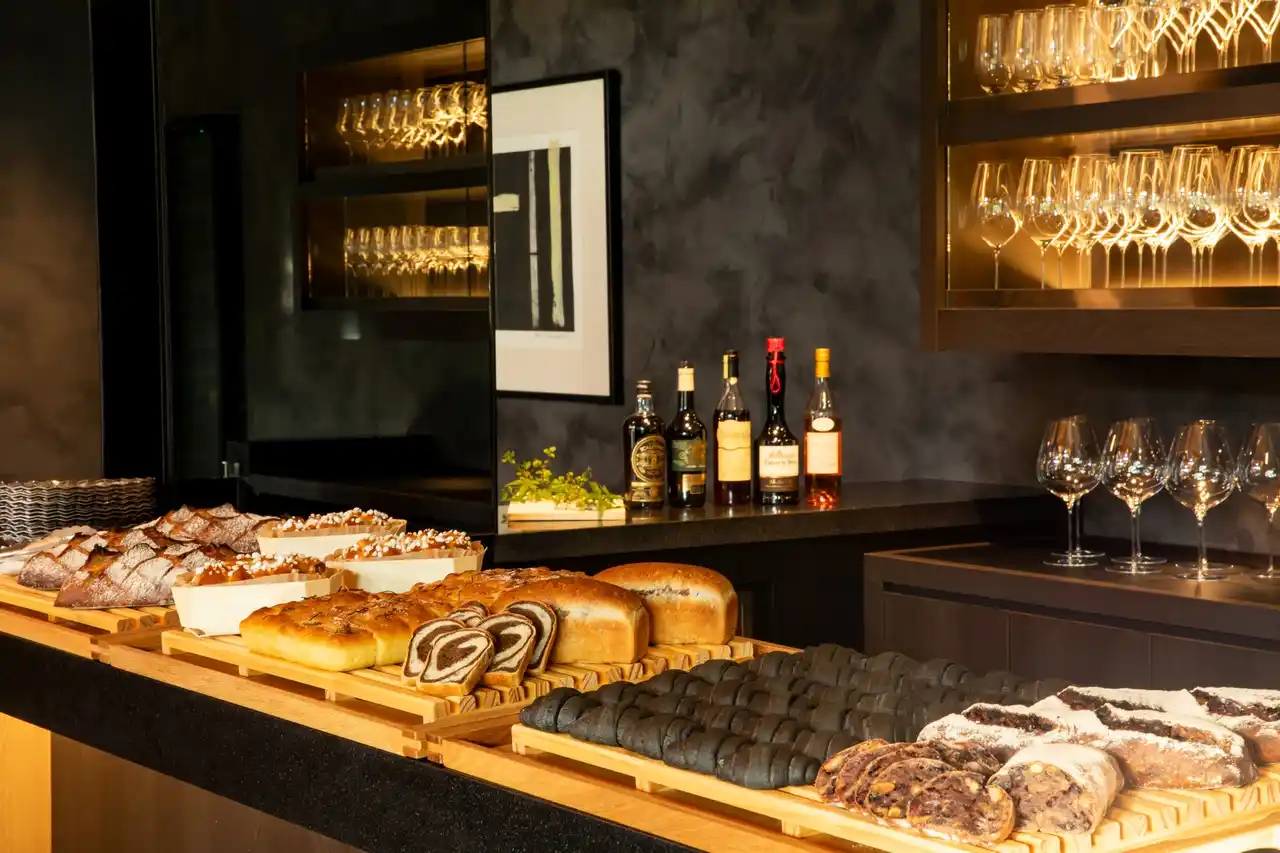 L'inflexionでは、レストラン併設の「LA BOUTIQUE」も営業しています。オリジナルのブランデーケーキ、赤ワインを練り込んだ「パン オ ヴァン」、オレンジフラワーのブリオッシュなど、手土産や贈り物にもお使いいただける商品を取り揃えています。 |