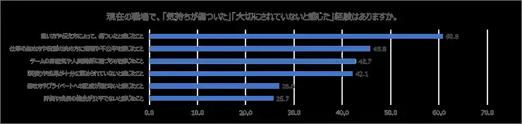 調査対象者:全国の20~40代の正社員・派遣社員の男女のうち、現在の職場で『気持ちが傷ついた』『大切にされていないと感じた』具体的な経験があると回答した人(複数項目のいずれかに該当) |