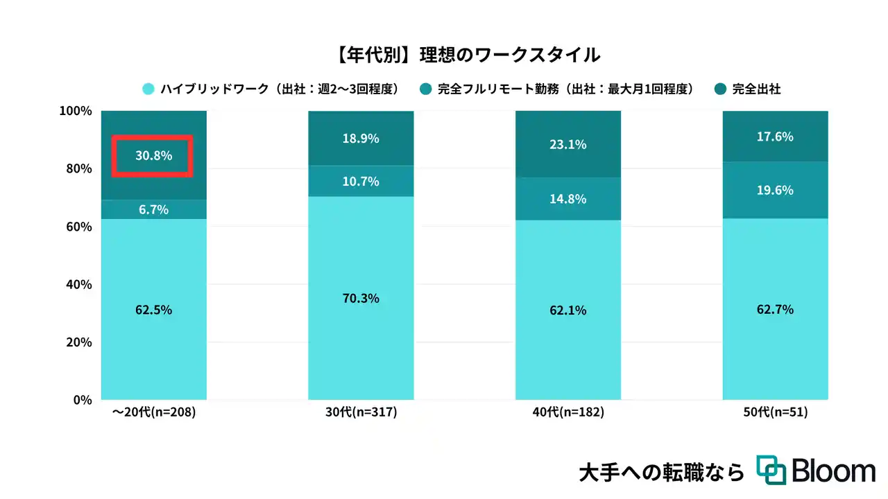 20代の約3割が「完全出社」を理想と回答する結果に |