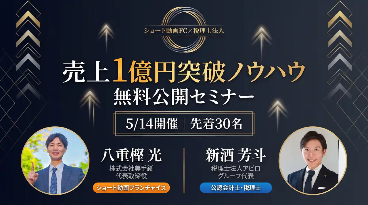 ショート動画屋さんFCの収益モデルと財務戦略を学ぶ無料セミナー(2026年5月14日開催) |