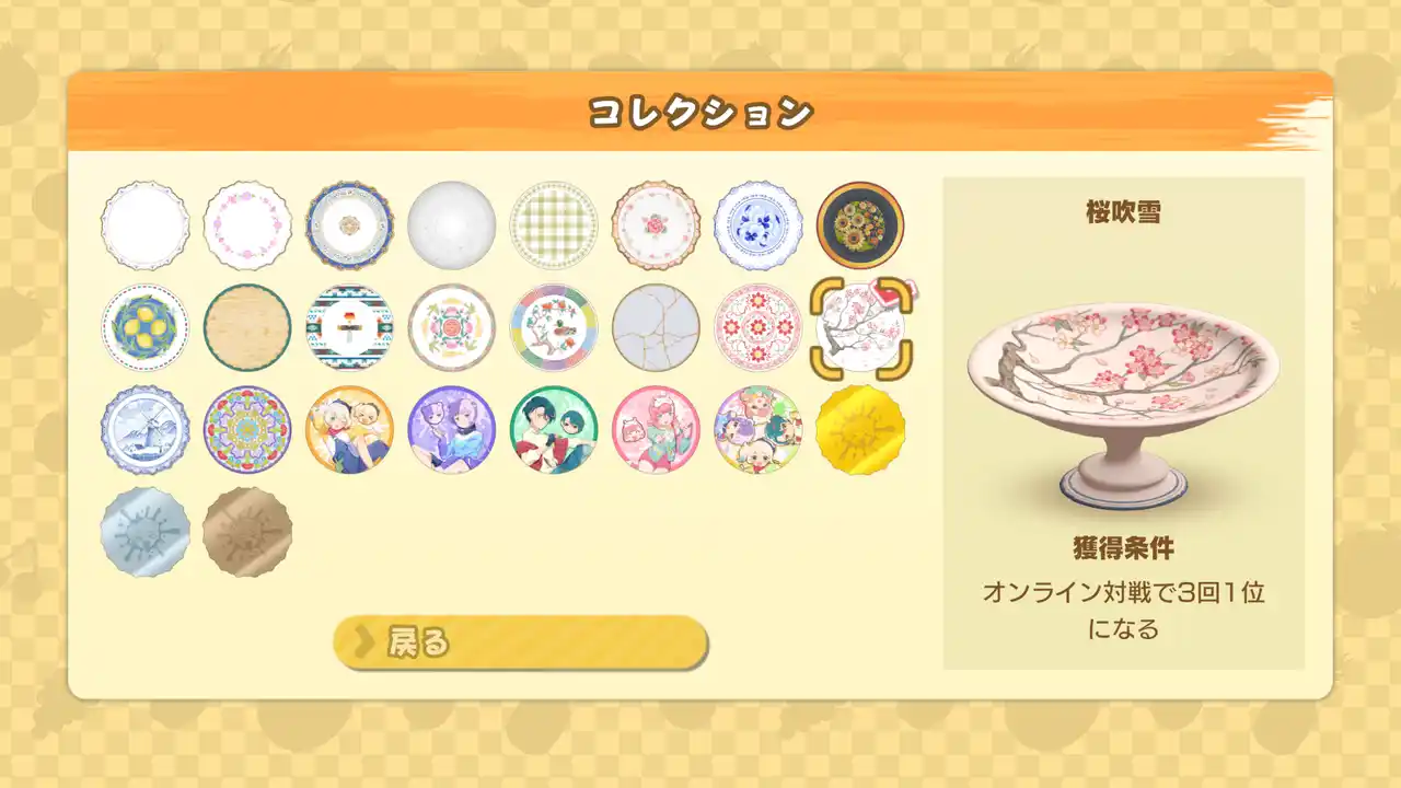 お皿の「着せ替え機能」を搭載。自分好みのスタイルで対戦に臨めます。 |