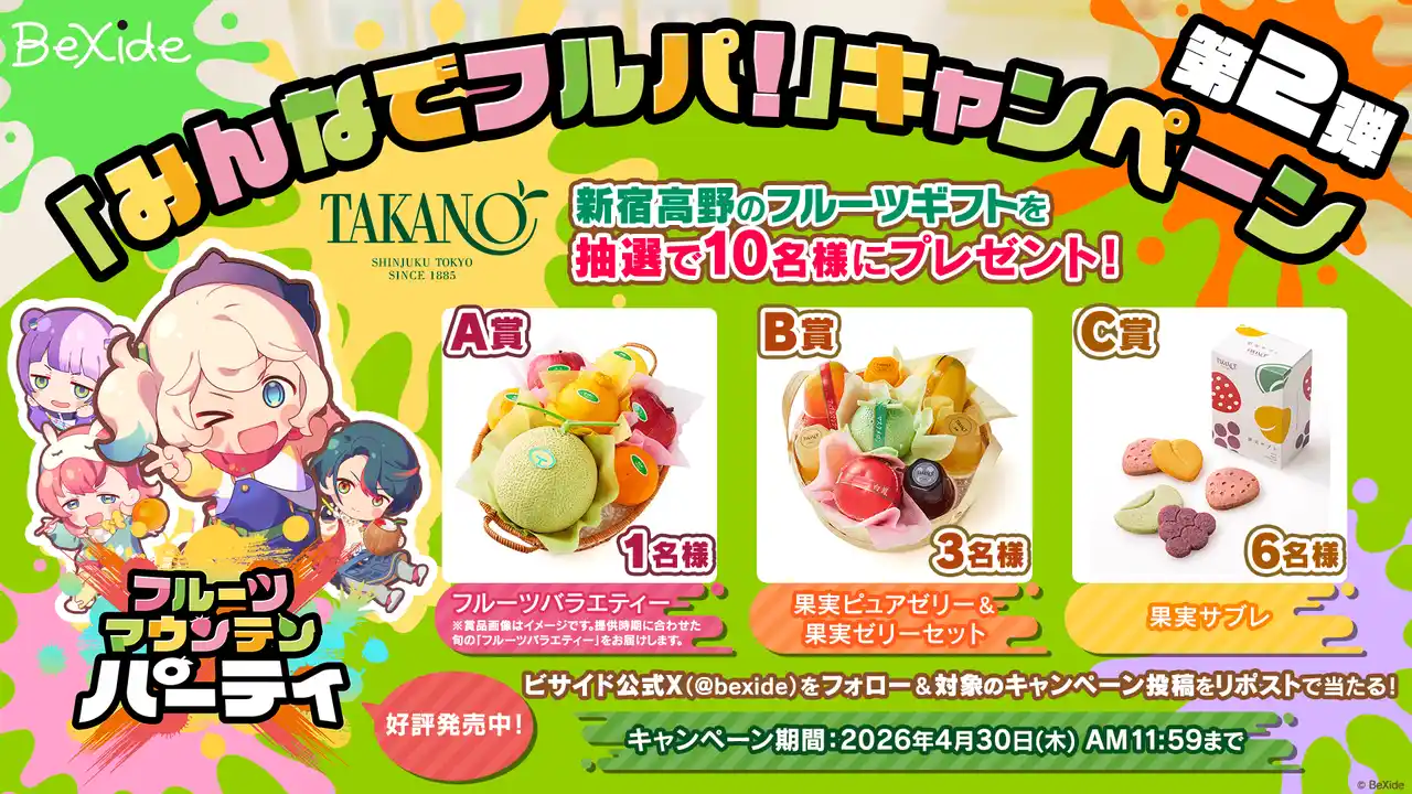 株式会社ビサイド(本社:東京都立川市、代表取締役:南治 一徳)は、現在、Steamにて早期アクセス中の対戦型3Dパズルゲーム『フルーツマウンテン パーティ』につきまして、2026年4月23日(木)にNintendo Switch(TM)、Nintendo Switch(TM) 2、およびSteam(R)にて3機種同時に発売(Steam版は正式版アップデート)したことをお知らせいたします。 |
