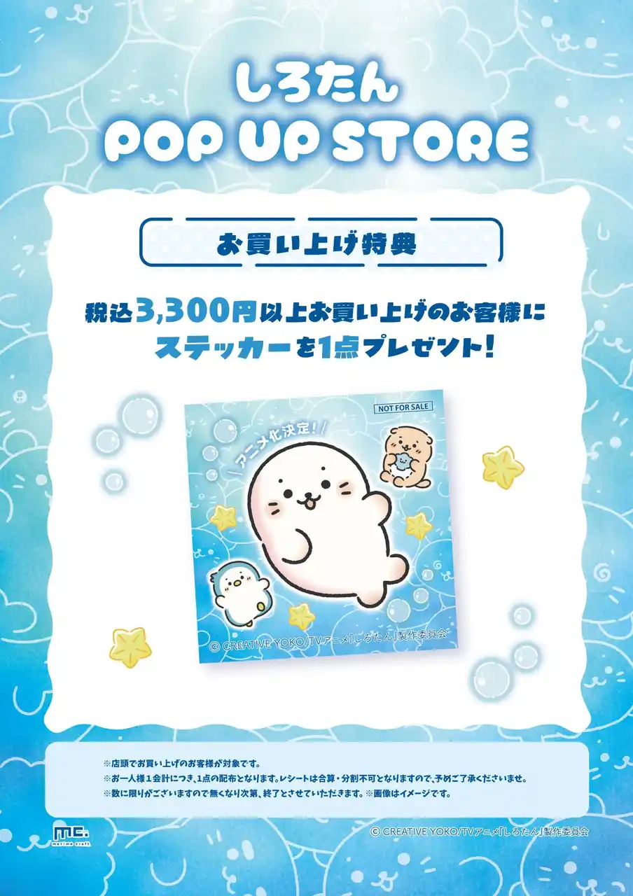 税込3,300円以上お買い上げのお客様に、TVアニメ『しろたん』のティザービジュアルを使用した「ステッカー」を1点プレゼント!