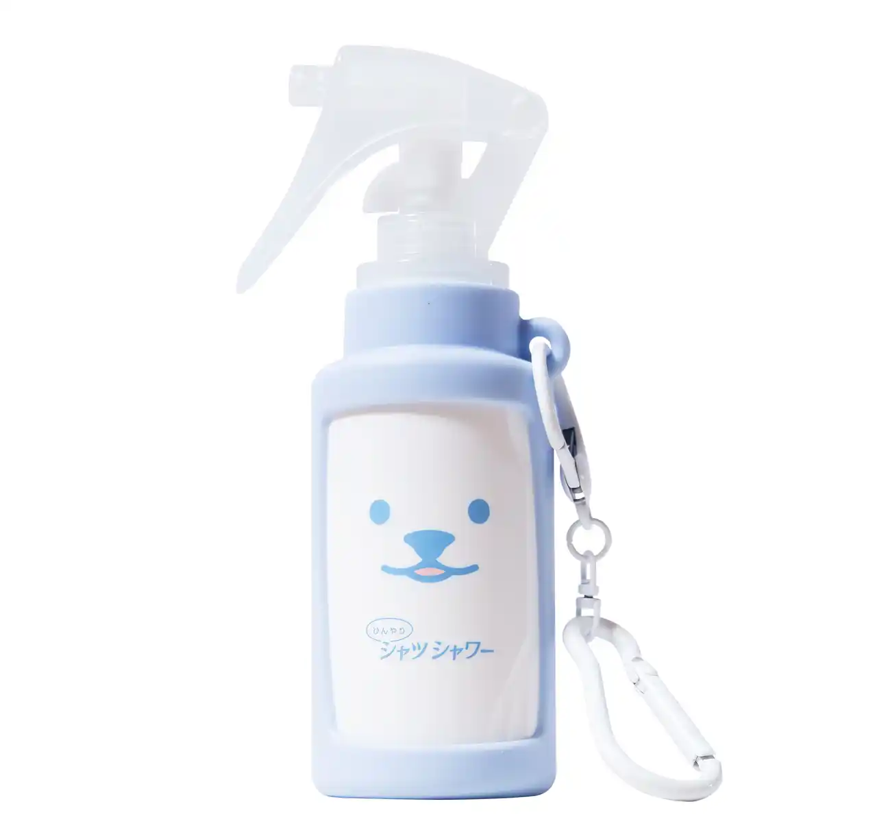 衣類に吹きかけることでひんやり感が得られるクールスプレーのミニサイズ。持ち歩き用ホルダー付き。 |