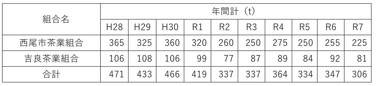 西尾市てん茶生産量 |