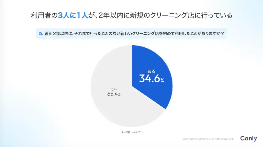 | 調査の結果、クリーニング利用者の3人に1人が、直近2年以内に新しいお店を利用したことがあるということがわかりました。 | |||||||||||