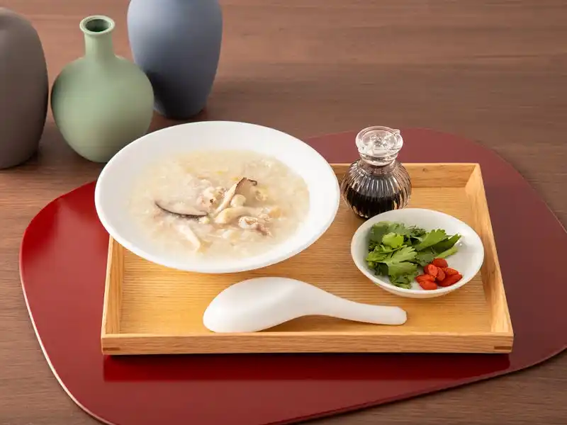 壬氏の体調確認に訪れた猫猫がご相伴に与った水連特製の鶏粥。 |