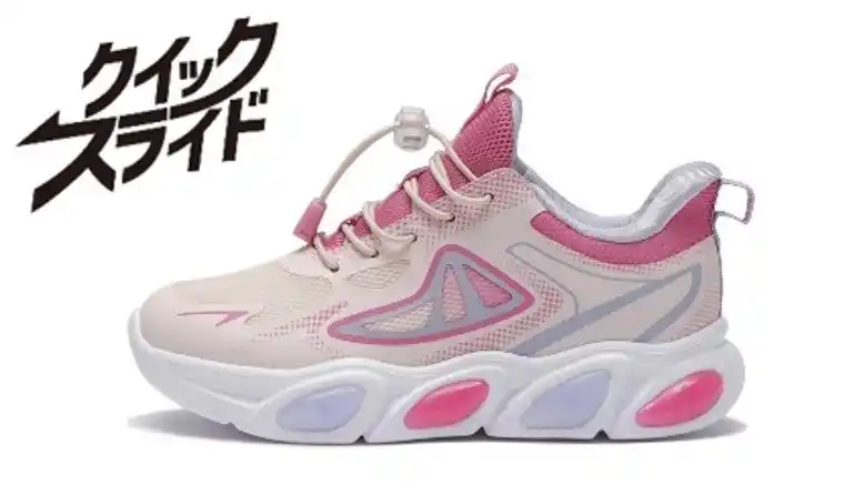 カラフルな配色が目を引く、ハンズフリー仕様のキッズスニーカー。 |